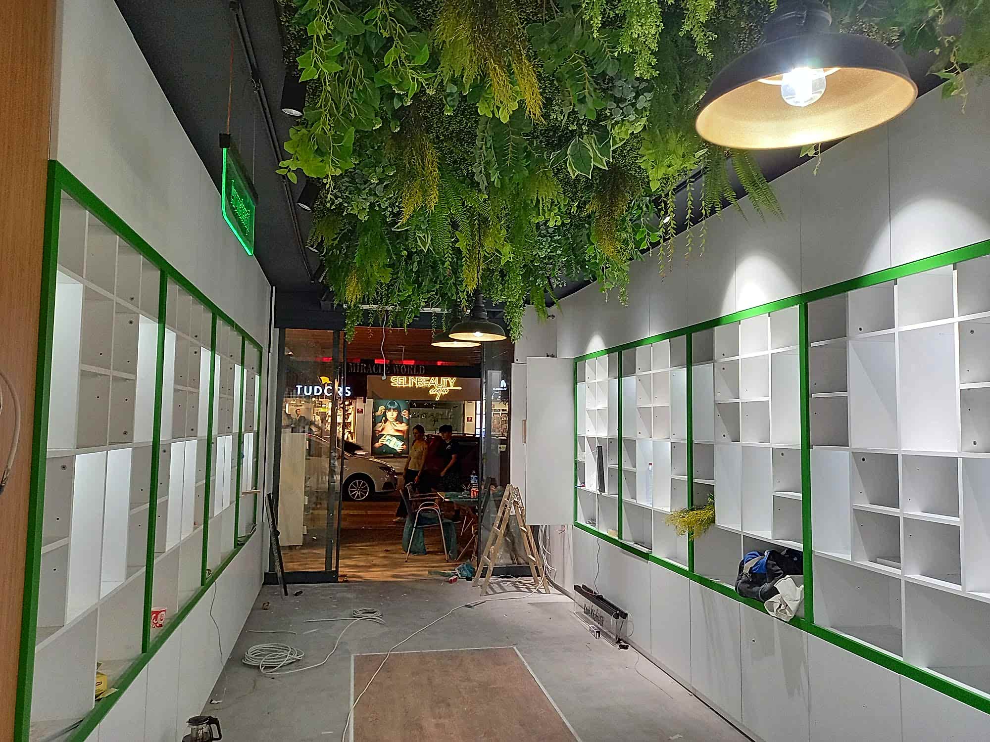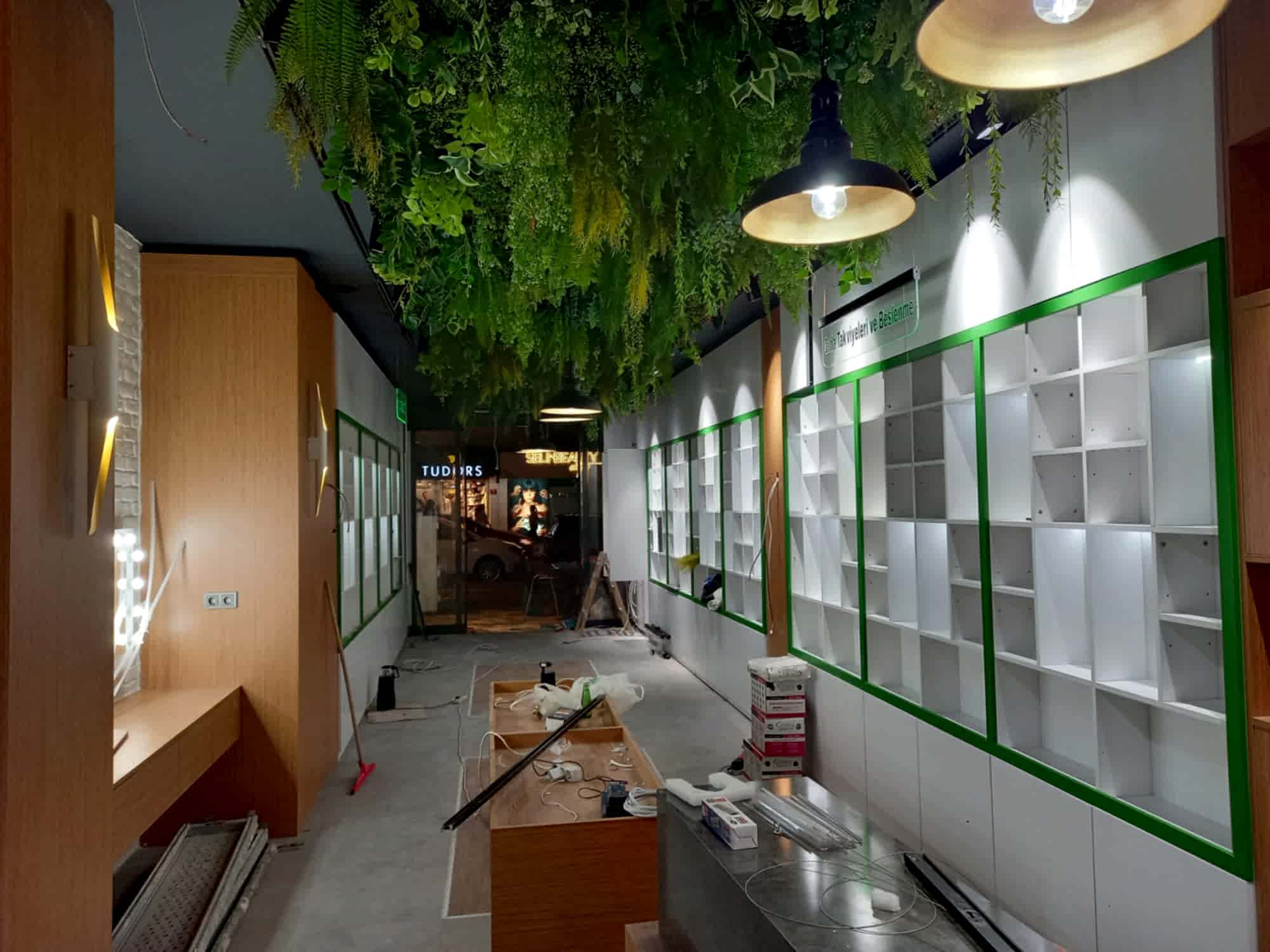 Eski Kavaklıdere Sinemasının giriş holünde açılan Botanik City firmasının tesisat, duvar, zemin, ışıklandırma, raf sistemleri vb. tüm mağaza dekorasyon işleri firmamız tarafından yapılmıştır.